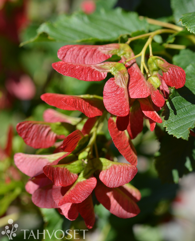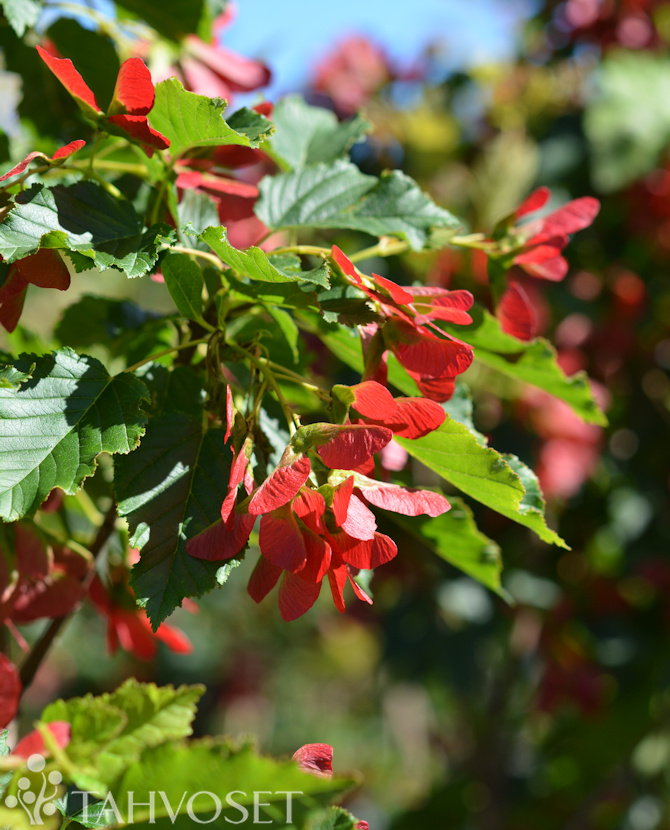 Keväällä kellertävät kukat, loppukesällä upean punaiset siivelliset lohkohedelmät, jotka korostuvat vihreää lehdistöä vasten. Syysväri oranssinpunainen.